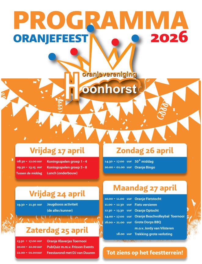 Geef je op via dit formulier of als u liever een mailtje verstuurd dan mag dat natuurlijk ook: opgave@oranjevereniginghoonhorst.nl